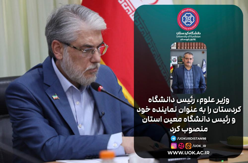 وزیر علوم، رئیس دانشگاه کردستان را به عنوان نماینده خود و رئیس دانشگاه معین استان منصوب کرد