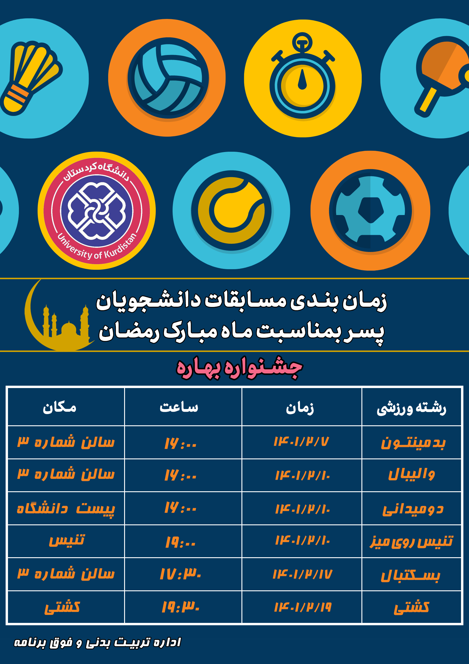 زمانبندی مسابقات دانشجویان پسر بمناسبت ماه مبارک رمضان