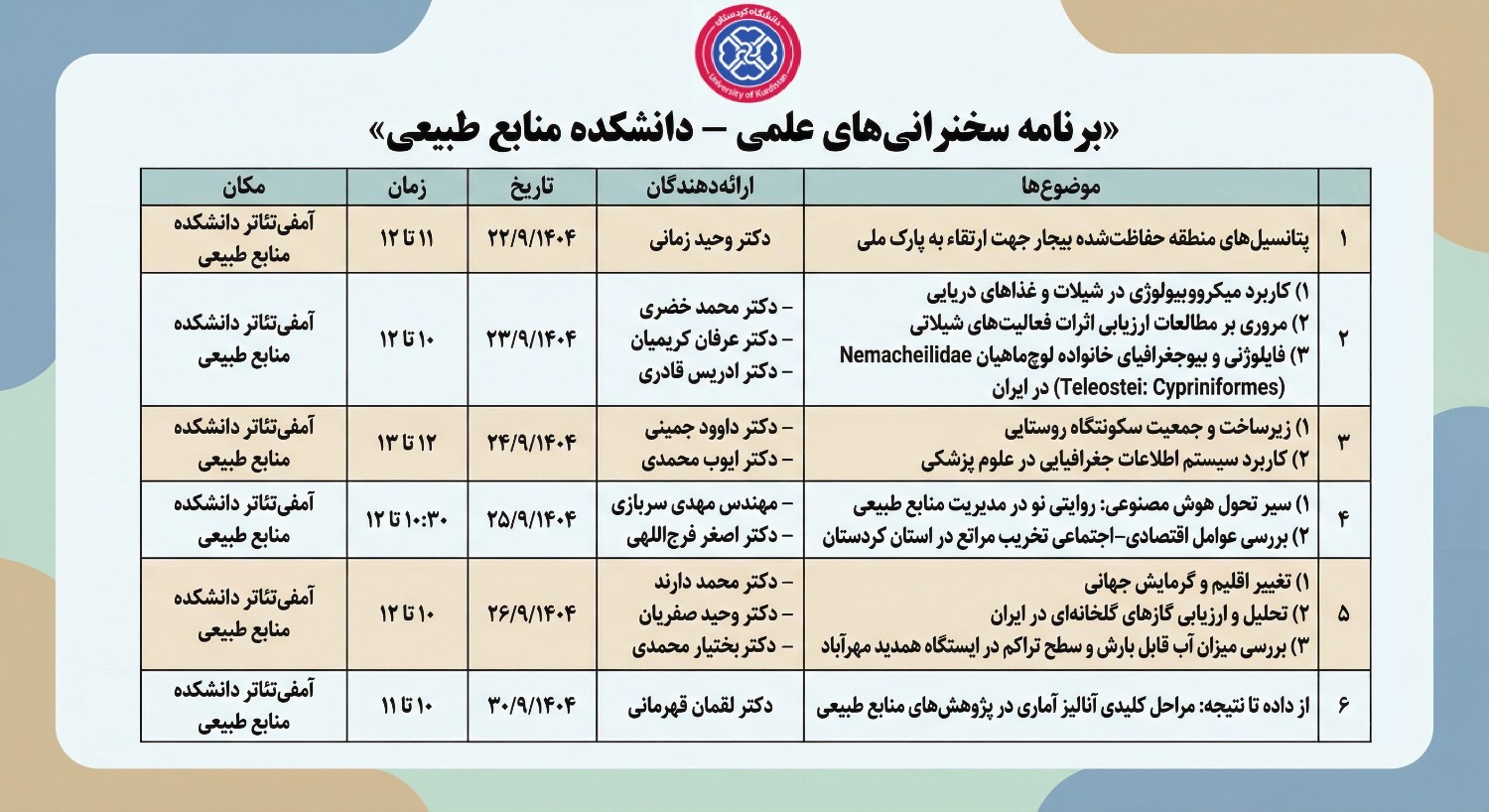 "دراسة العوامل الاجتماعية والاقتصادية لتدهور المراعي في محافظة كردستان"، يقدمها الدكتور أصغر فرج اللهي.