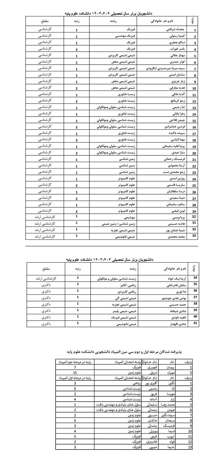 تقدیر از دانشجویان برتر سال تحصیلی ۴۰۴ـ۴۰۳ و پذیرفته شدگان مرحله...