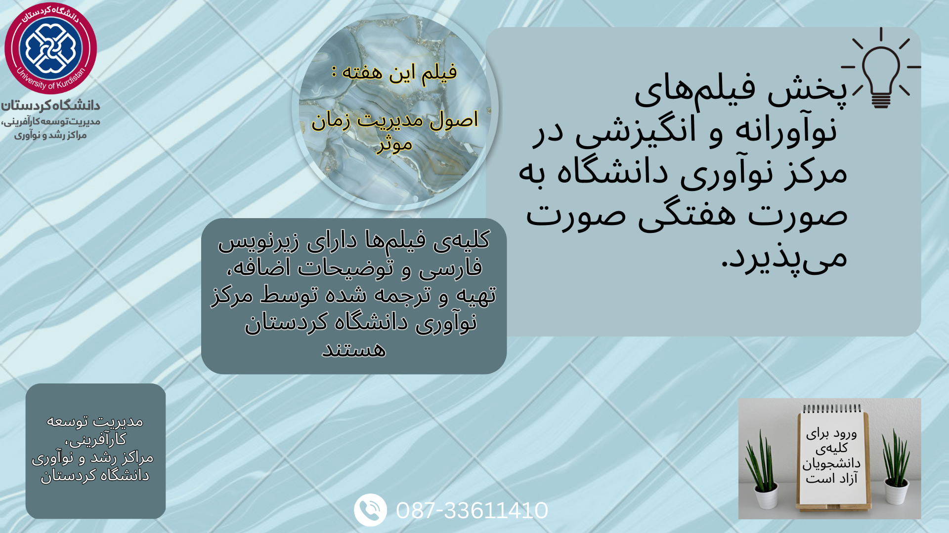 پخش فیلمهای کوتاه انضباط شخصی و کارآفرینی در مرکز نوآوری دانشگاه کردستان