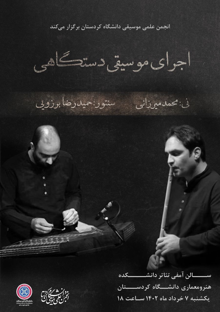 به اطلاع می رساند روز یکشنبه مورخ 7 خرداد ساعت 18 آقایان محمد میرزائی و حمیدرضا برزویی از اساتید گروه موسیقی به اجرای دو نفره می پردازند. از علاقمندان دعوت میشود در این اجرا حضور بهم رسانند.