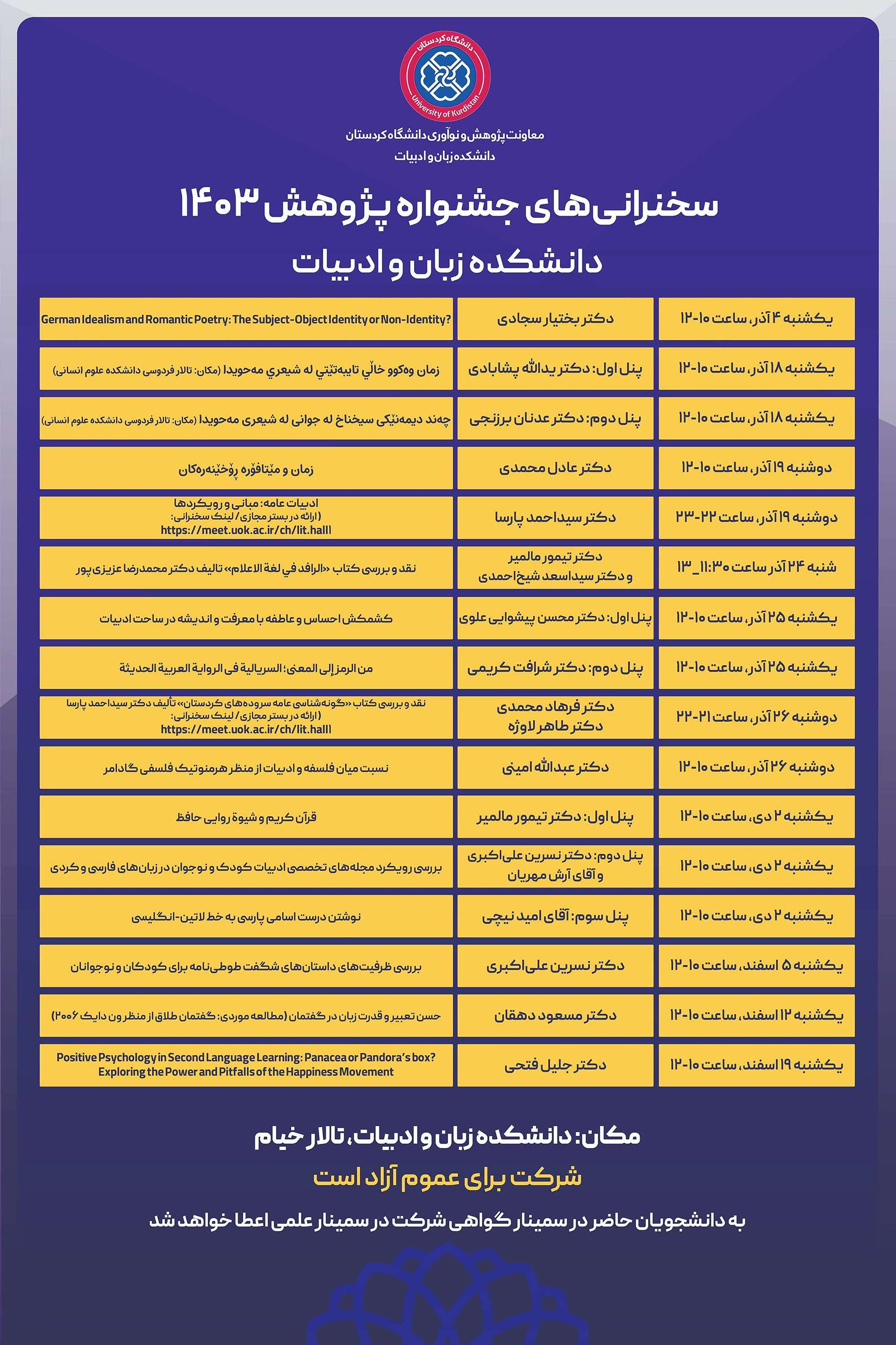 دانشکده زبان و ادبیات به مناسبت هفته پژوهش برگزار می کند
