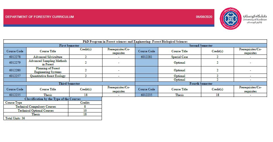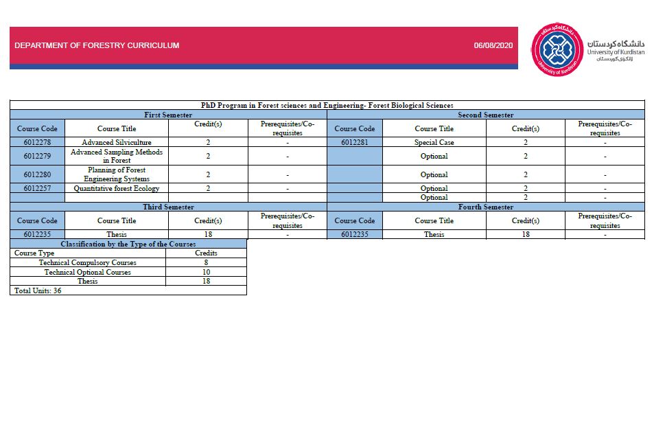 | 6 | PhD | Forest Science and Engineering / Forest Biology | Course Syllabus |
