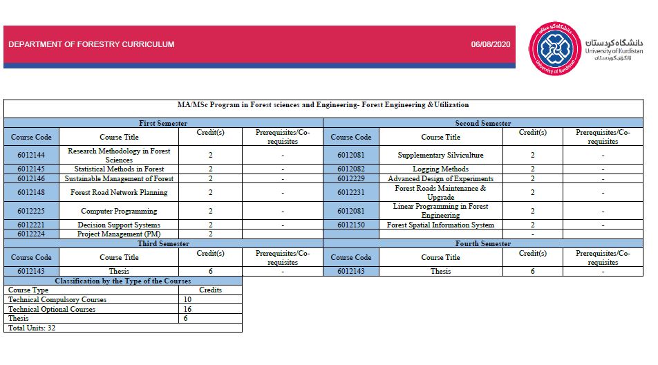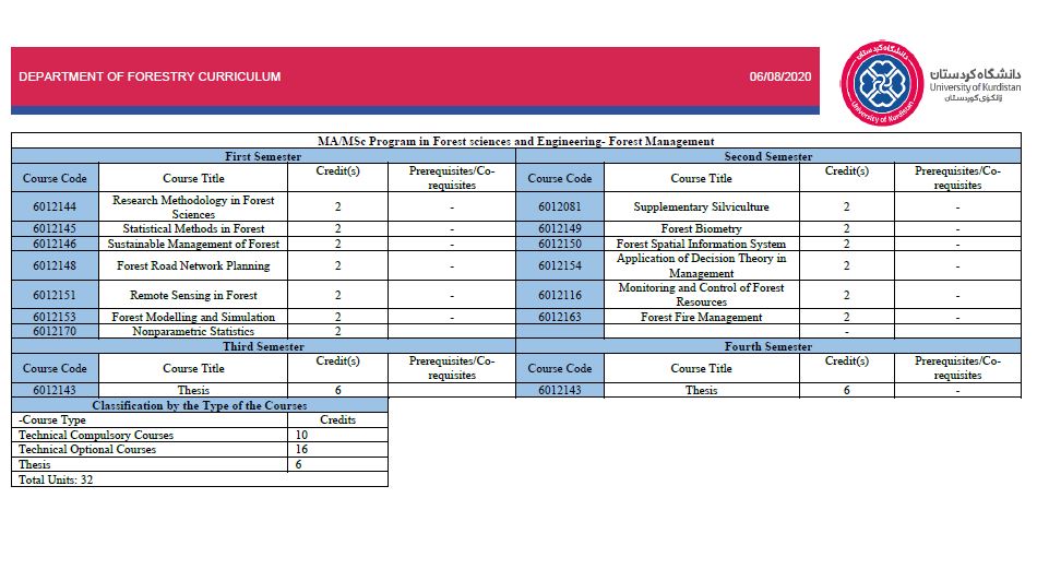 | 4 | MSc | Forest Science and Engineering / Forest Engineering and Utilization | Course Syllabus |