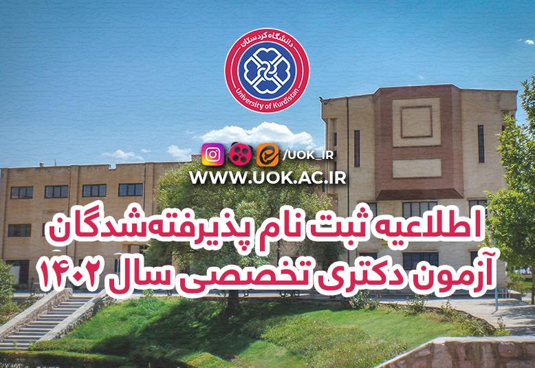 اطلاعیه ثبت نام پذیرفتهشدگان آزمون دکتری تخصصی سال 1402 در دانشگاه کردستان