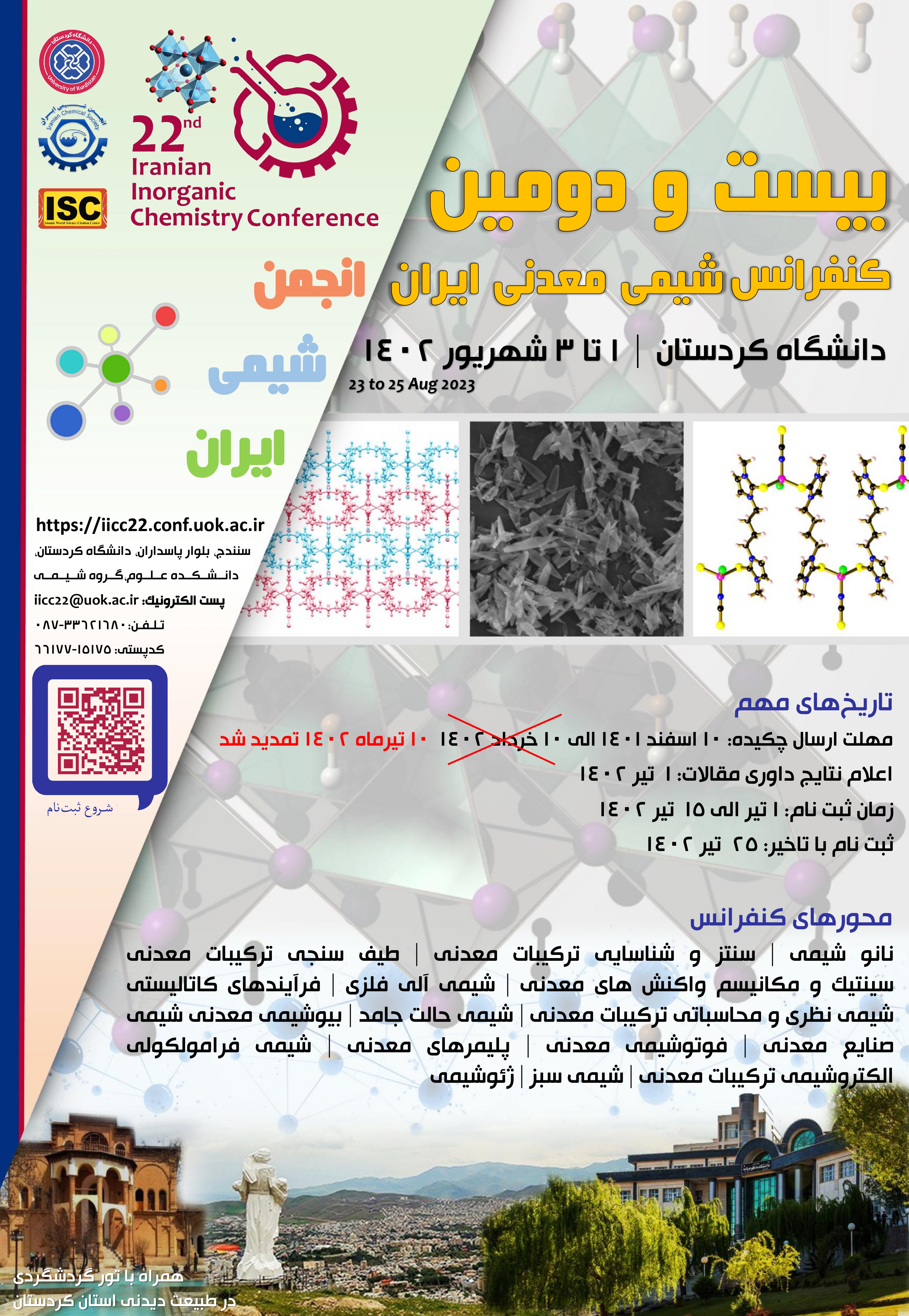 به حول و قوهی الهی بیست و دومین سمینار شیمی معدنی ایران در تاریخ یکم تا سوم شهریورماه سال جاری به میزبانی شهر سنندج در دانشگاه کردستان برگزار خواهد شد. در این رویداد علمی دو سالانه، دانشمندان و دانشجویان زیادی از سرتاسر کشور عزیزمان به مدت سه روز در استان کردستان و شهر زیبای سنندج حضور خواهند داشت. با افتخار اعلام می دارد که دبیرخانه سمینار، آمادگی کامل برای هر نوع مشارکت و برپایی غرفه جهت معرفی شرکت ها و واحدهای مرتبط با شیمی را دارد.
