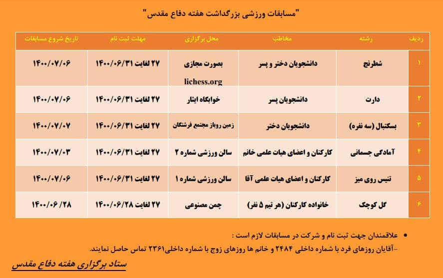 برگزاری مسابقات ورزشی به مناسبت هفته دفاع مقدس
