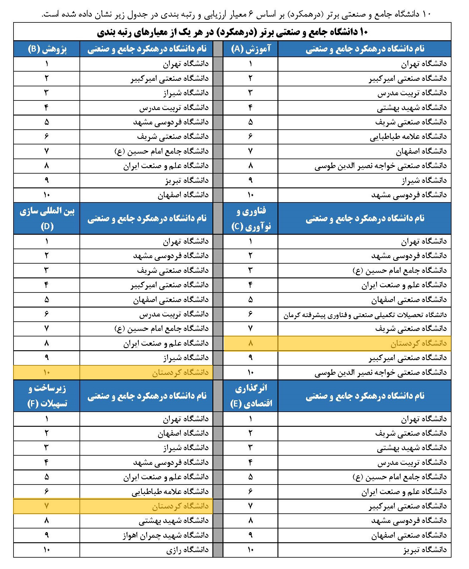دانشگاه کردستان در رتبهبندی ISC موفق به کسب رتبه 11 در میان دانشگاههای جامع کشور شد.