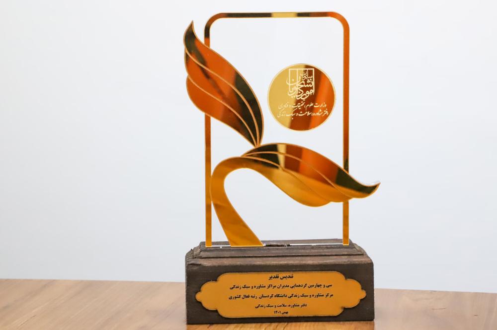 در پایان این گردهمایی با حضور معاون وزیر و رئیس سازمان امور دانشجویان، مراسم تقدیر از مراکز مشاوره و سبک زندگی و تقدیر از مراکز بهداشت و درمان «برتر، نمونه و فعال» سراسر کشور برگزار شد که مرکز مشاوره دانشگاه کردستان به عنوان "مرکز مشاوره فعال کشوری" انتخاب و مورد تجلیل قرار گرفت.
