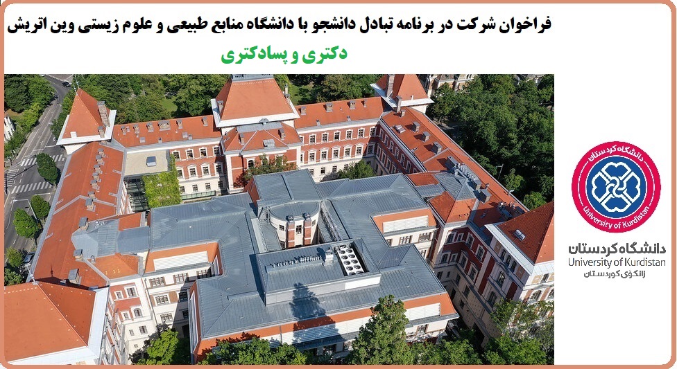 مدیریت امور بینالملل دانشگاه کردستان در نظر دارد دانشجویان دکتری و پژوهشگران پسادکتری واجد شرایط را در قالب برنامه تبادل دانشجو/ پژوهشگر برای ترم تحصیلی پاییز ۱۴۰2 به دانشگاه منابع طبیعی و علوم زیستی وین (University of Natural Resources and Life Sciences, Vienna (BOKU)) اعزام نماید. این برنامه تحت حمایت مالی گرنت اتریشی ERNST MACH Grant قرار دارد و به دانشجویان دکتری/ پژوهشگران پسادکتری که موفق به دریافت گرنت شوند علاوه بر تامین هزینههای سفر رفت و برگشت، ماهیانه مبلغ ۱۰۵۰ الی 1150 یورو برای پوشش هزینههای زندگی به مدت یک ترم تحصیلی (حداکثر تا 9 ماه) پرداخت خواهد شد.