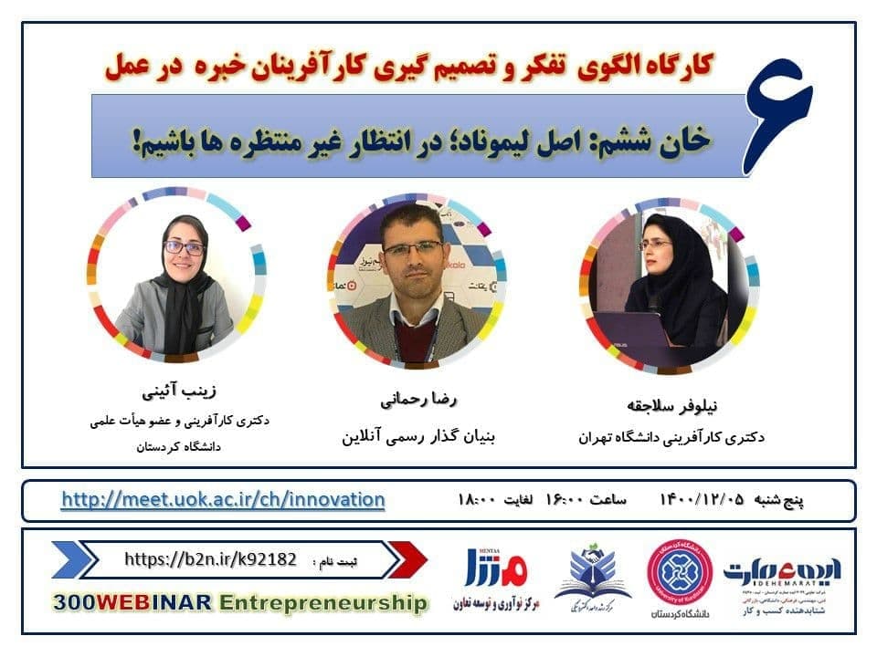 ششمین دوره از سری اپیزود های کارگاه الگوی تفکر و تصمیم گیری کارآفرینانِ خبره در عمل برگزار خواهد شد.