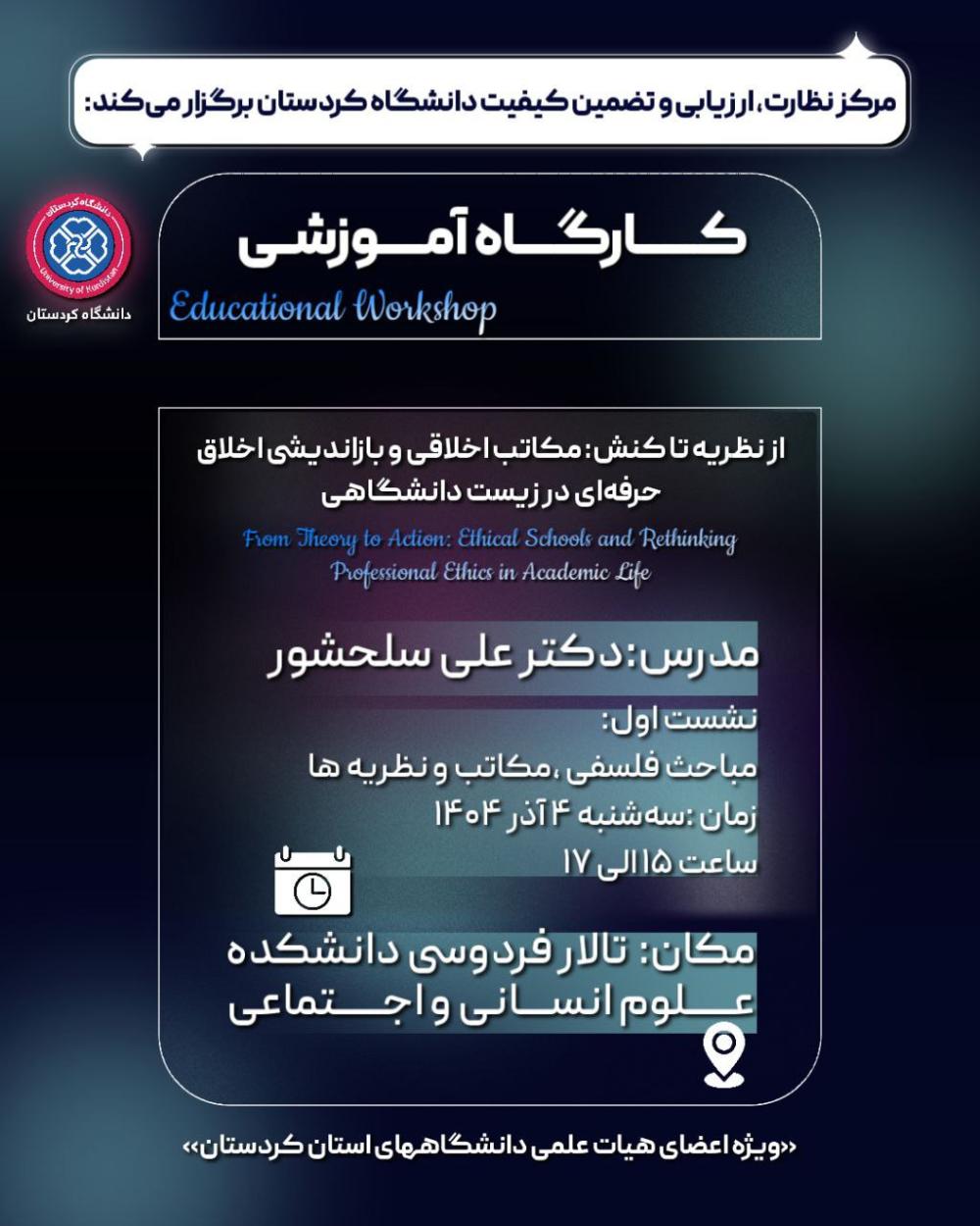 مرکز نظارت،ارزیابی و تضمین کیفیت دانشگاه کردستان برگزار میکند.