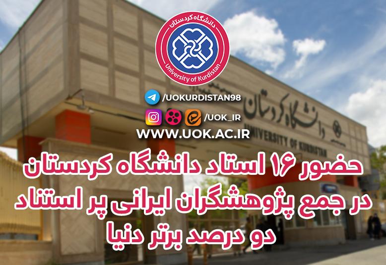 بر اساس آخرین بروزرسانی پایگاه ISC در مهر ماه 1402، 16 نفر از اساتید دانشگاه کردستان در جمع پژوهشگران ایرانی پر استناد دو درصد برتر دنیا قرار گرفتند.