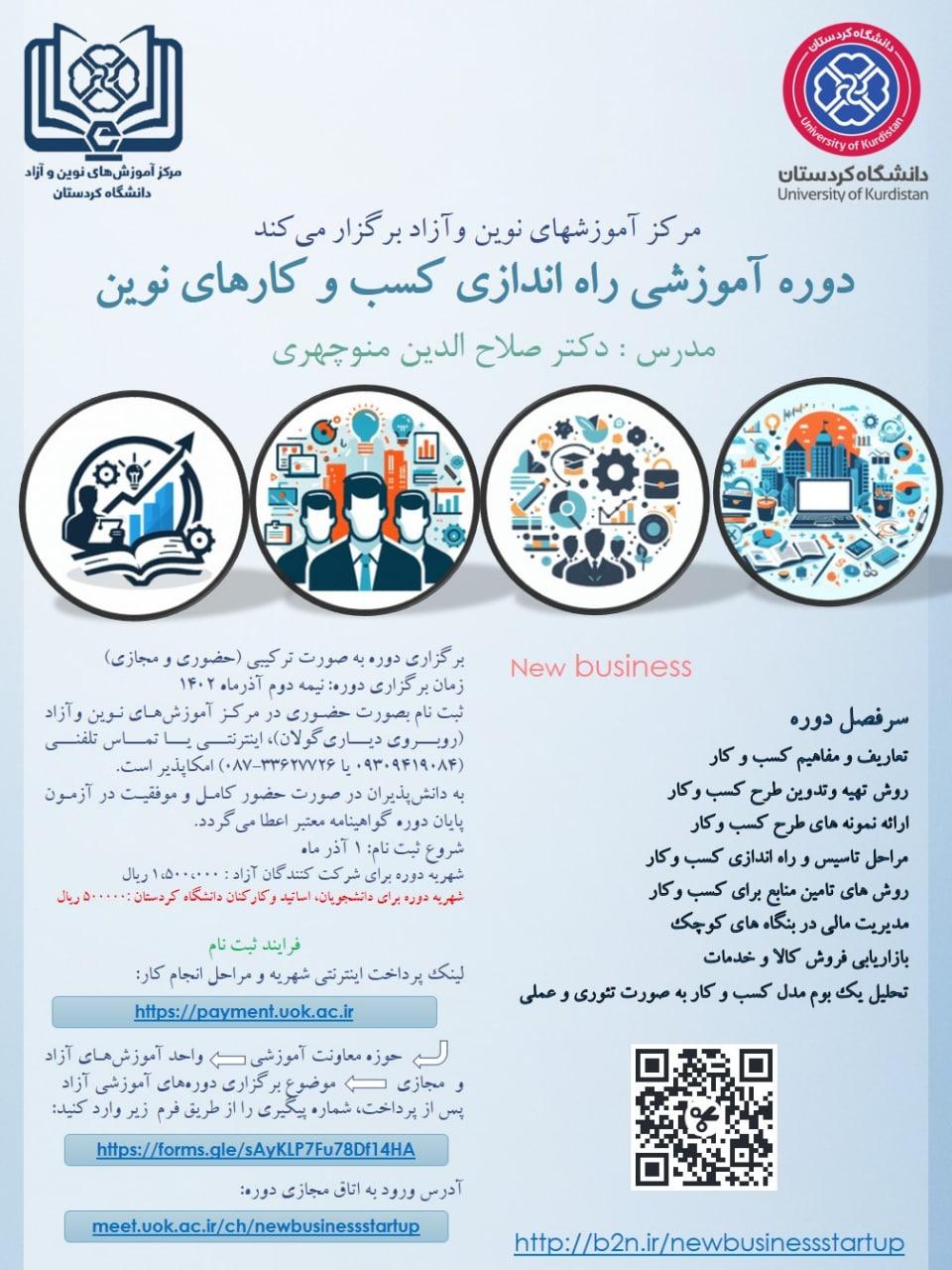 مركز آموزش‌های نوين و آزاد دانشگاه كردستان برگزار می‌کند: