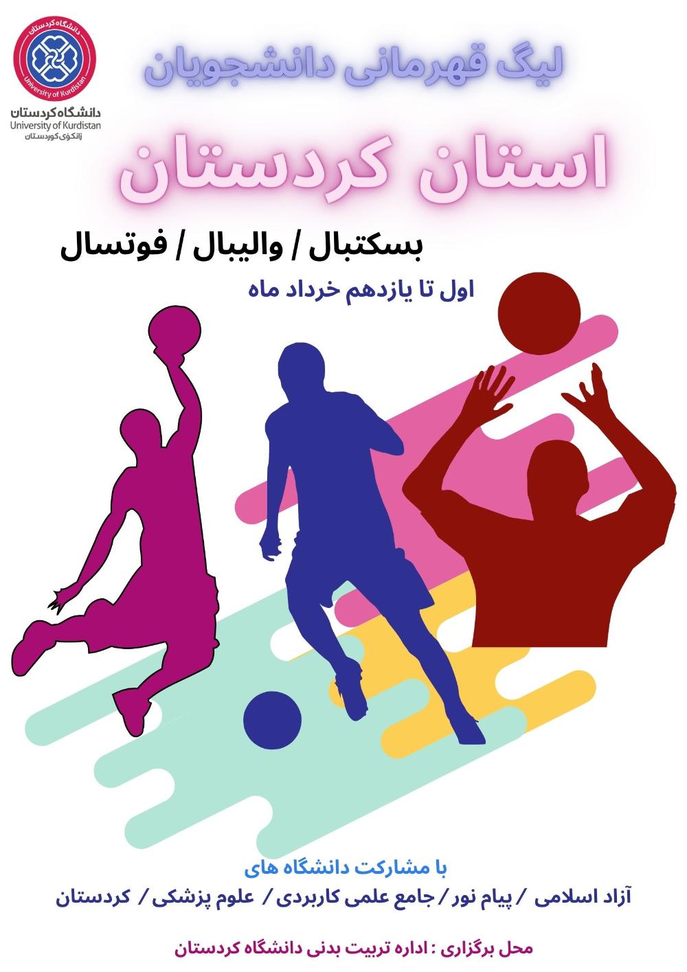 مسابقات لیگ قهرمانی دانشجویان استان کردستان یکم تا یازدهم خردادماه به میزبانی دانشگاه کردستان برگزار خواهد شد.